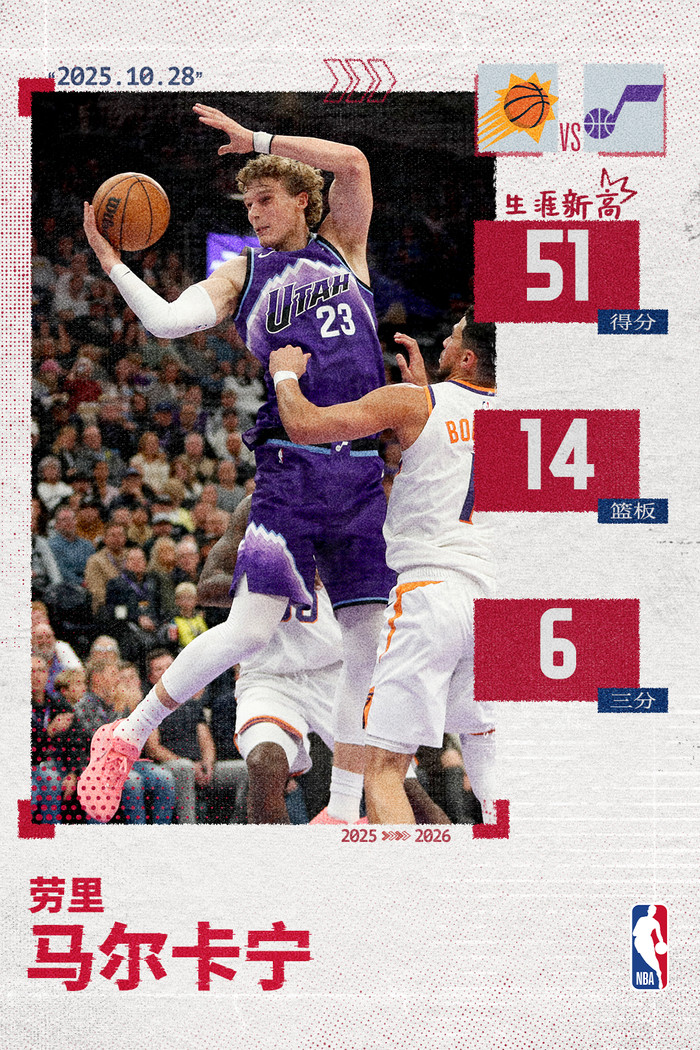 51分不但创造了他的个人单场得分新高,更让他成为自1998年的卡尔-马龙之后,首位单场砍下50+的爵士球员。