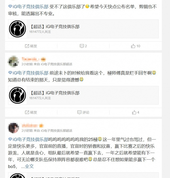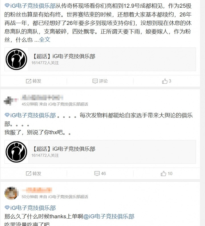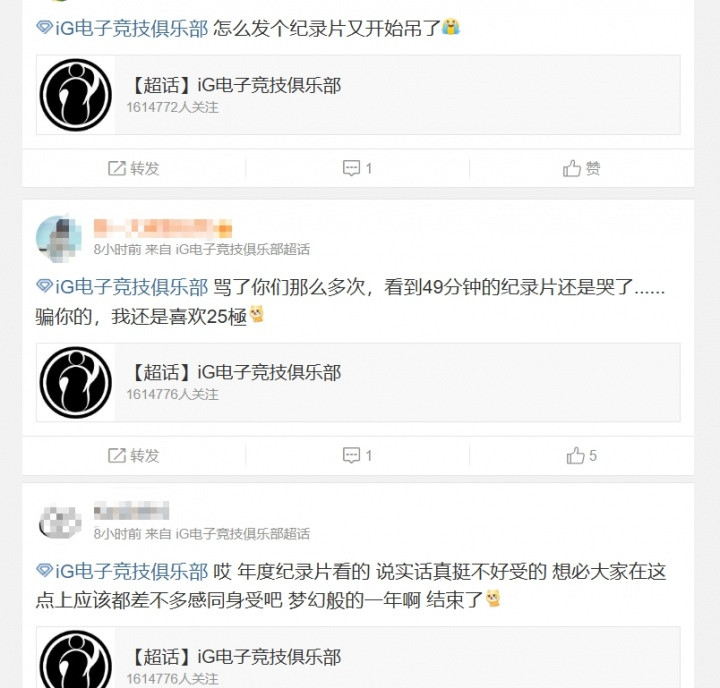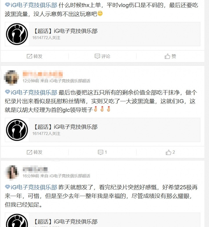 iG粉丝热议纪录片: 每次发物料都能给自家选手带来大舆论的俱乐部