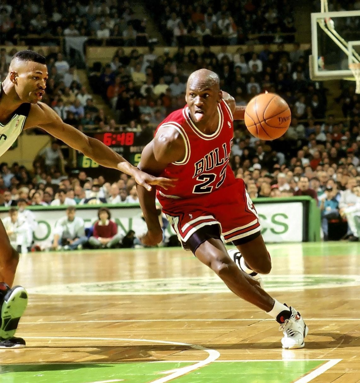 当年乔丹于铮铮巨人丛林之中横冲直撞上演暴力美学,煽情表演此时一览无余。