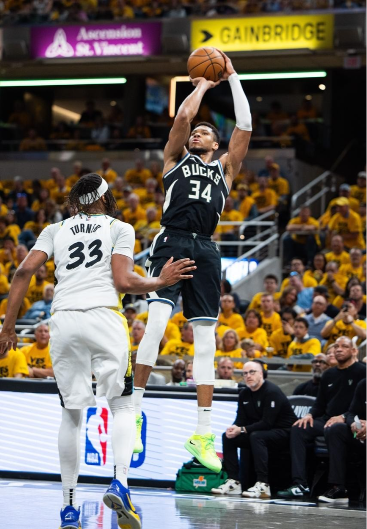 上赛季季后赛首轮雄鹿对阵步行者,五场比赛字母哥场均33分,就此联盟第一,比第二的东契奇高了2.8分;