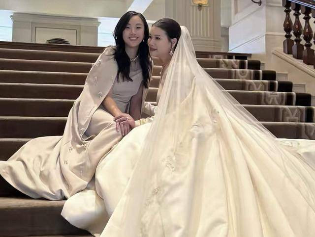 可以看到,雷正殷特意定制的这套婚纱,非常的雍容华贵。婚纱没有复制的设计,但后摆、头纱的设计都颇有特色,雷正殷穿上婚纱整个人颇有气质。从设计、质量就能看出,雷正殷的这套婚纱价值不菲。