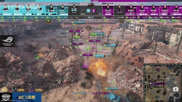 失去140技能加成的三台AMX 50福熙B大装填节奏突变,出现了致命的火力真空期。MAFIA敏锐地捕捉到了这一稍纵即逝的战机。他们凭借更胜一筹的集火效率和钢铁般的执行力,果断发起总攻。承担着发起HIT第二轮输出节奏的panzfury几乎被瞬秒,使他们弹夹体系的第二轮爆发被成功遏制。