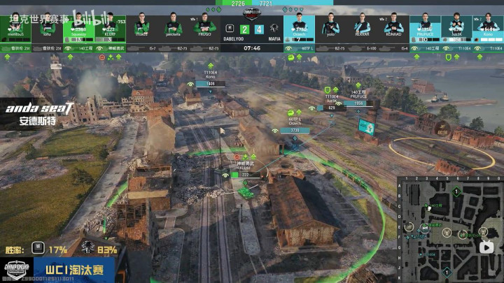 这一锤子虽然立即就带走了MAFIA一台BZ-75外加两个大残,但没有达成歼灭目标,给了MAFIA反攻的机会。紧接着转折点就来了:HIT队内负责提供鼓舞加成的140工程坦克因走位失误,率先被击毁。这一细微的破绽,瞬间引发了致命的连锁反应。
